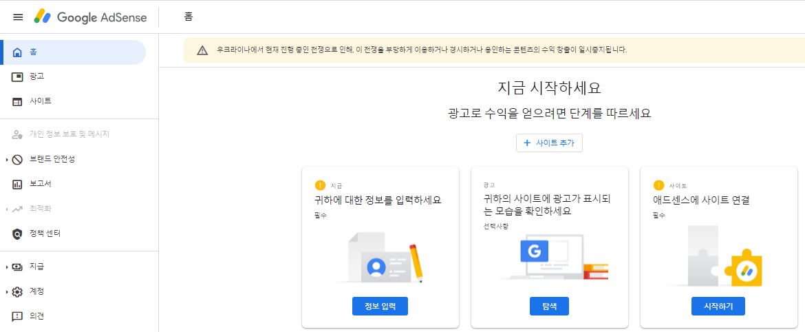 오늘은 구글 애드센스(Google AdSense)에 가입하는 것까지 진행했습니다.