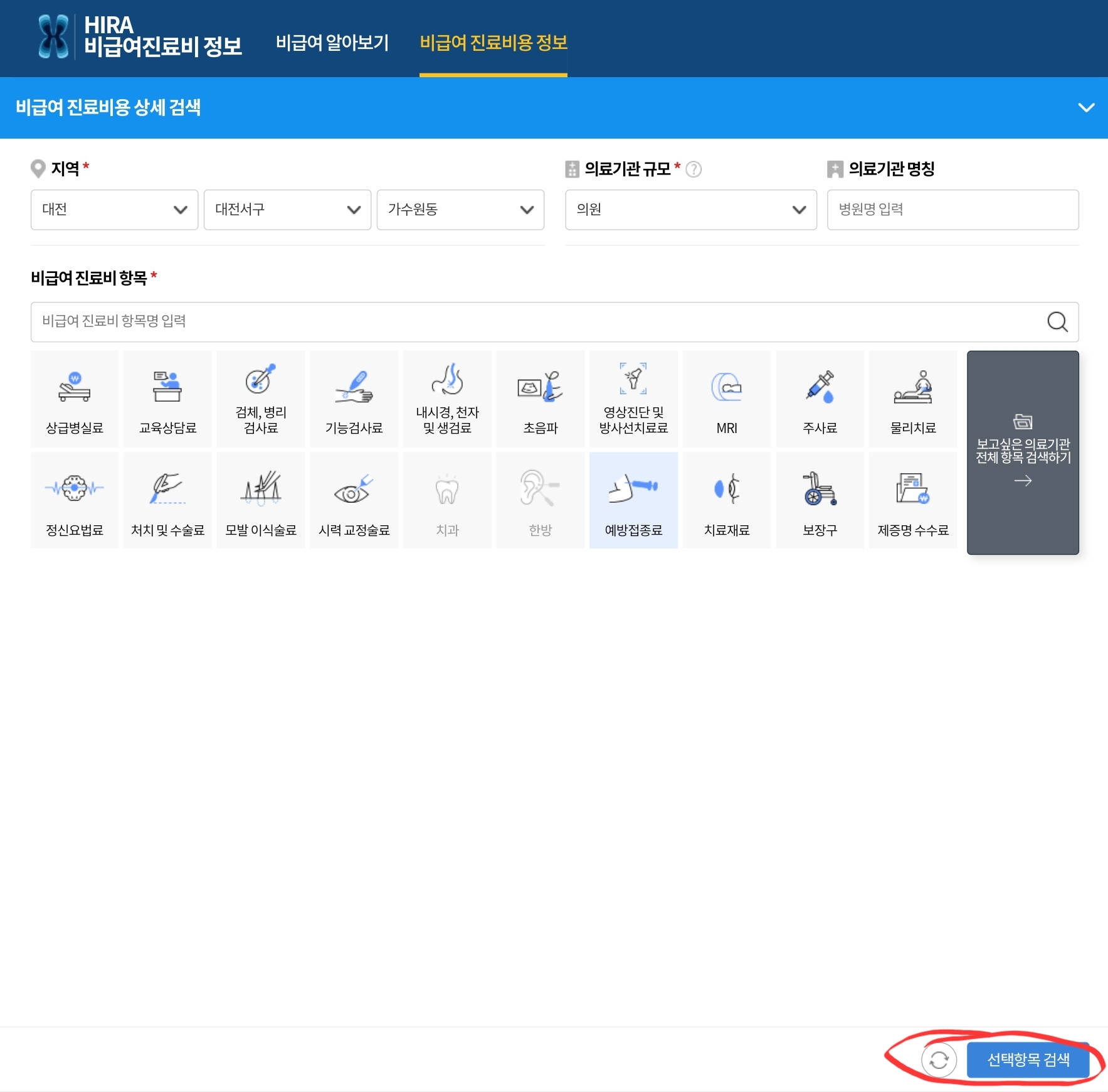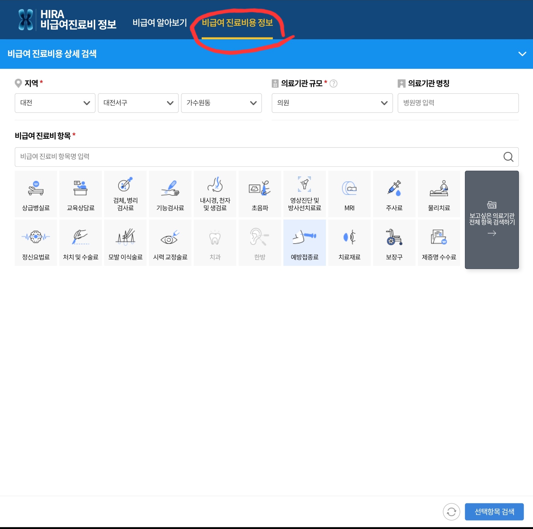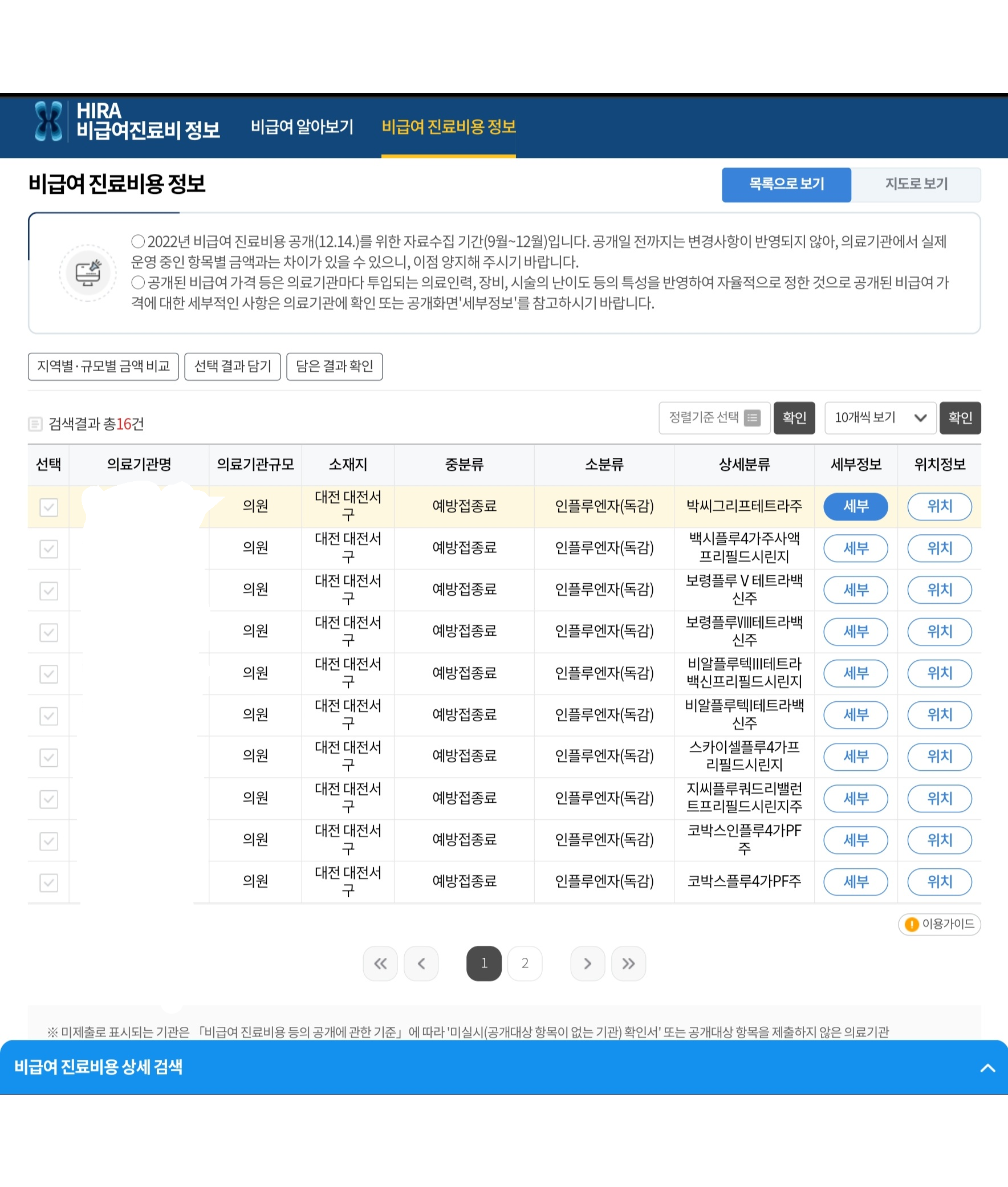 1) 유료독감예방접종 가격 조회 : 건강보험심사평가원 홈페이지