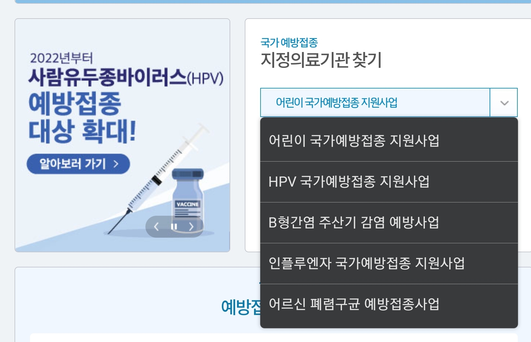 질병관리청의 예방접종도우미 홈페이지인데요. 이곳에 접속하면 국가에서 지원하는 각종 예방접종의 정보를 알 수 있습니다.