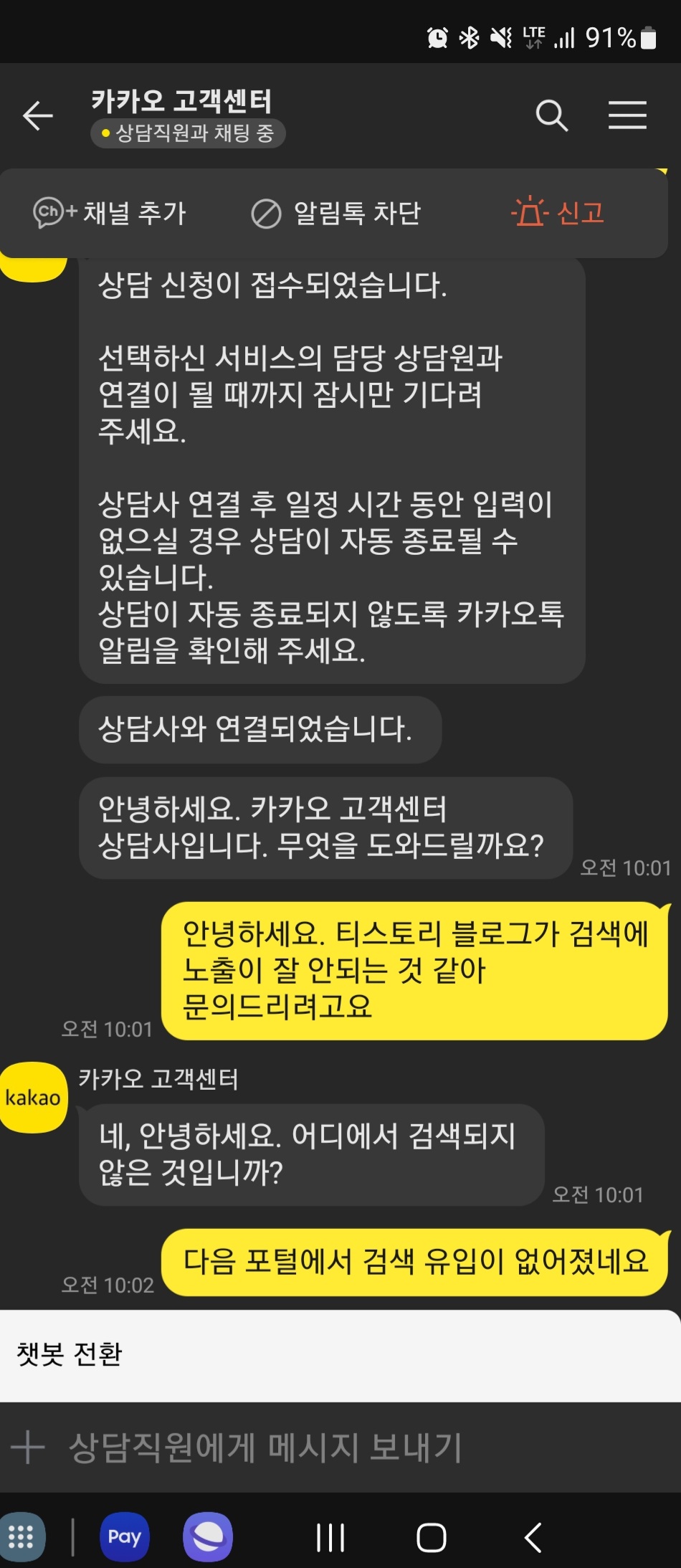저는 블로그를 시작한지 얼마 안돼서 계속 모니터링 하고 있었기에 바로바로 알 수 있었는데요. 꼬박꼬박 확인하지 않으시는 분들은 잘 모를 수 있을 것도 같더라구요. 티스토리 블로그 저품질이 와도 상담으로 해결할 수 있으니 저품질에 걸리신 분들은 이렇게 해결해보시기 바랍니다. 감사합니다!!