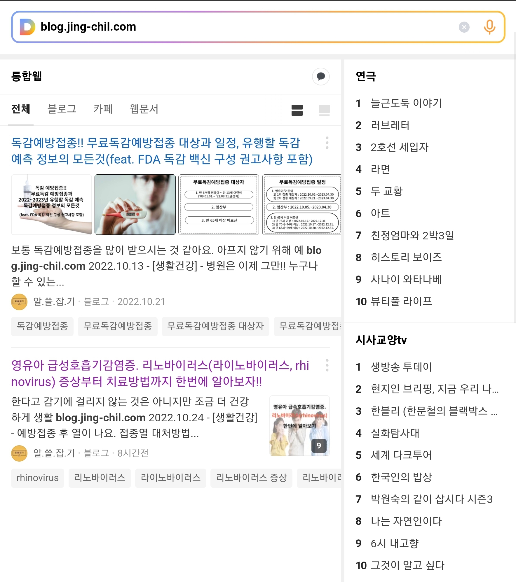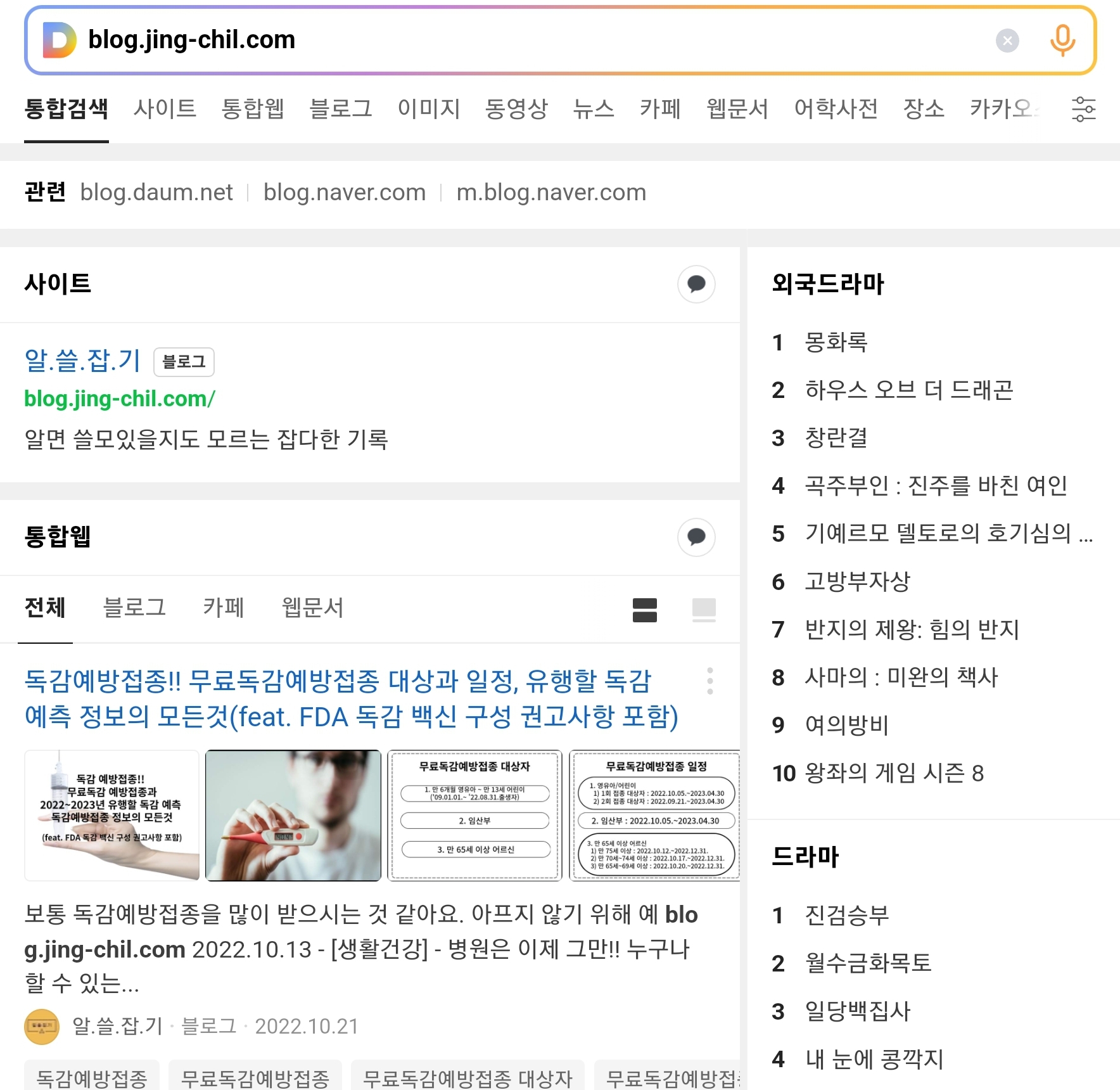 실제로 메시지를 받은 이후에 재검색을 해보니 상단의 사이트에 제 블로그가 검색되기 시작했죠.