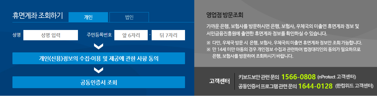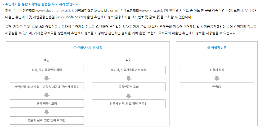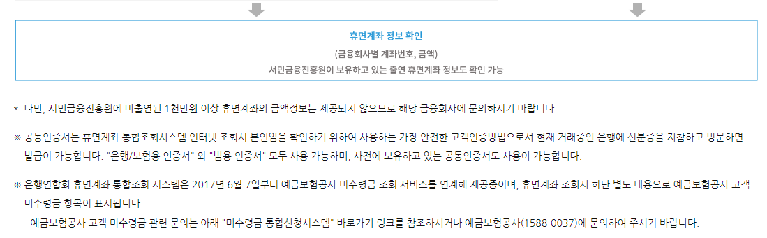 휴면계좌 통합조회 서비스 사용 방법