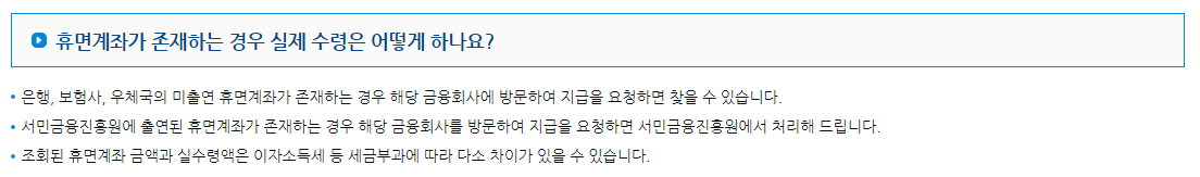 휴면계좌 존재 시 수령방법