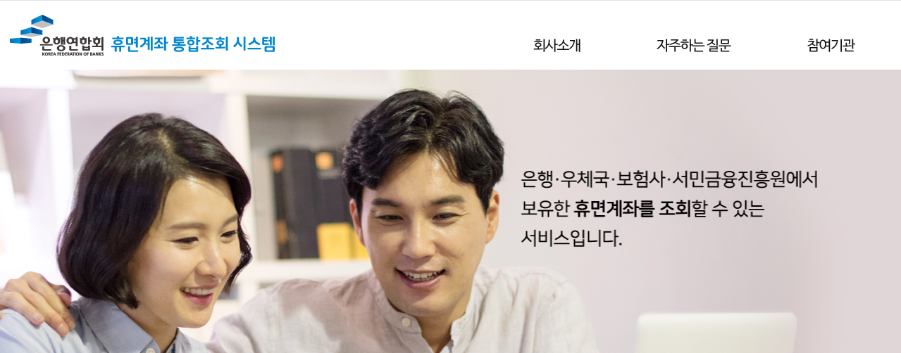 은행연합회 휴면계좌 통합조회 시스템 홈페이지 화면